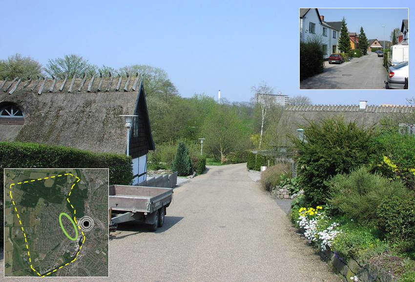 Grimstrup – Landsby der nu er en del af byen med blandet beboelse og erhverv.