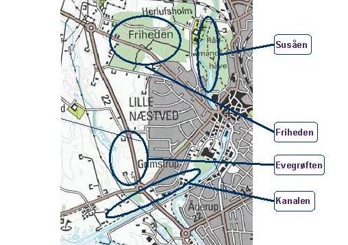 I udkanten af Lille Næstved findes 4 områder med stier, der er velegnet til motion.